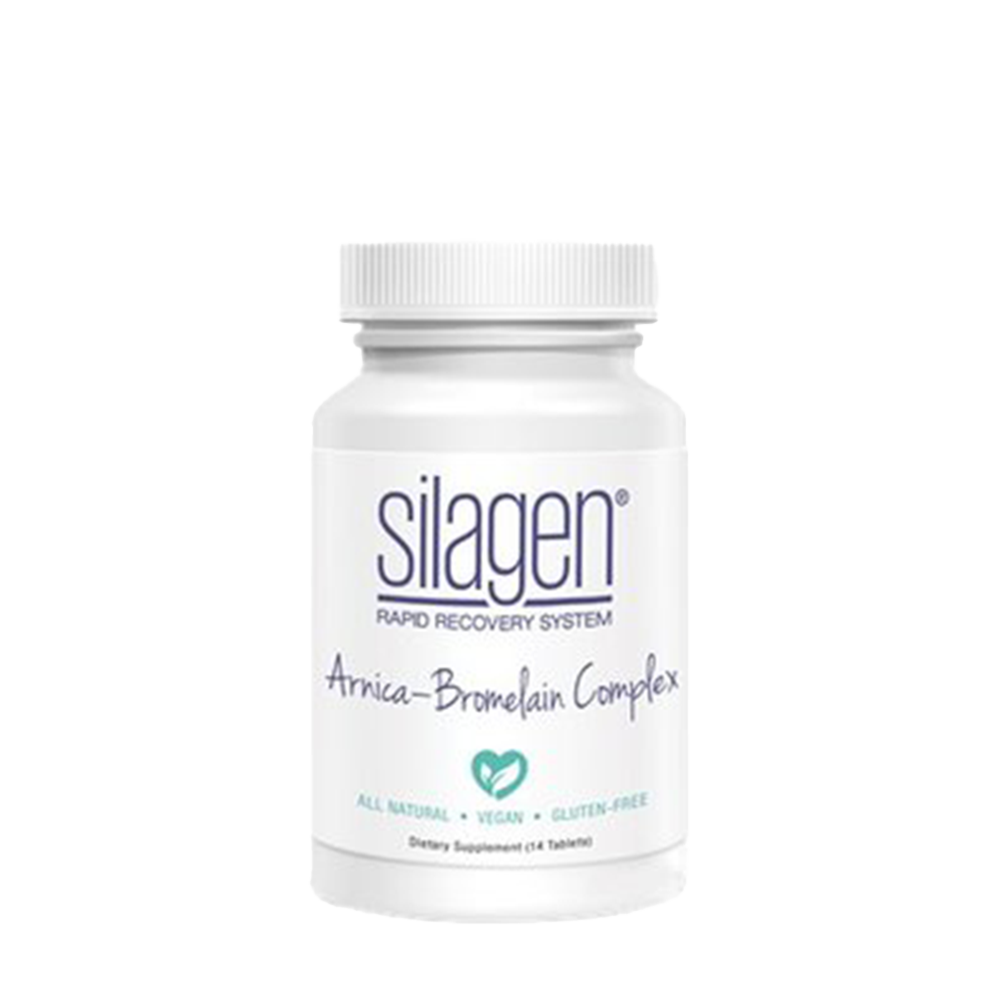 One Complete Formulation to Speed Your Recovery from Surgical Procedures and Dermal Filler Injections. Silagen Arnica-Bromelain Complex, the only combination of arnica montana and bromelain, has been shown to speed the healing time up to 50% allowing for faster recovery from bruising, swelling, and pain associated with soft tissue injuries. Bromelain is a digestive enzyme found in pineapples which breaks down proteins that can trap blood and fluids in tissues.There are no reported side effects with Silagen Arnica-Bromelain Complex.